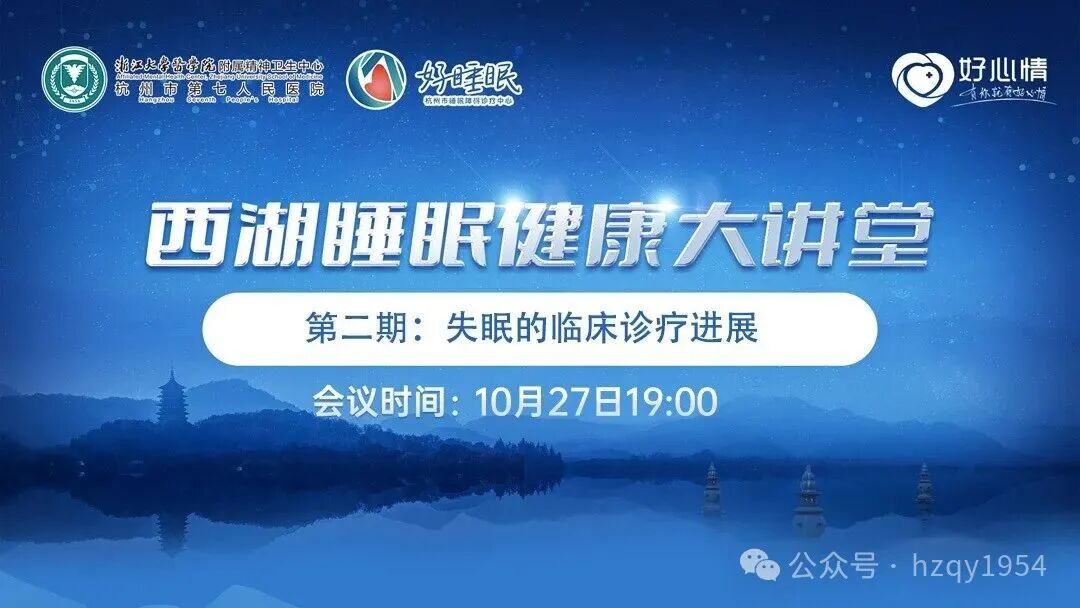10月27日晚上7点!“西湖睡眠健康大讲堂”第二期上线!共同关注“失眠的临床诊疗进展”!