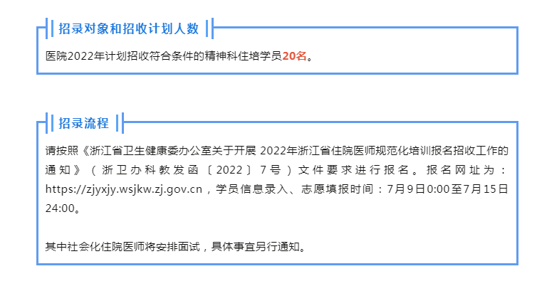 机会来了!2022年精神科住院医师规范化培训招生啦!